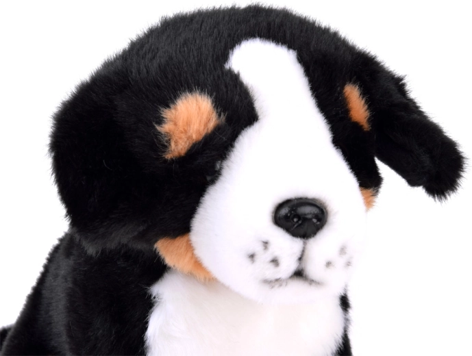 Cette peluche offre des détails qui imitent fidèlement un véritable Bouvier bernois.