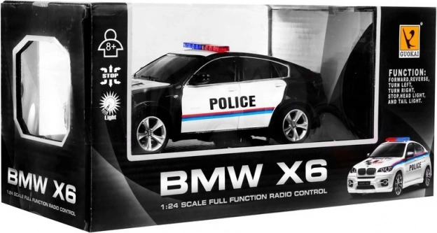 | Description | BMW X6 télécommandée POLICE à l’échelle 1:24 27 MHz (866-2404P) |