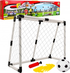 | - but de football blanc avec filet, - ballon, - pompe, - 6 piquets. | |