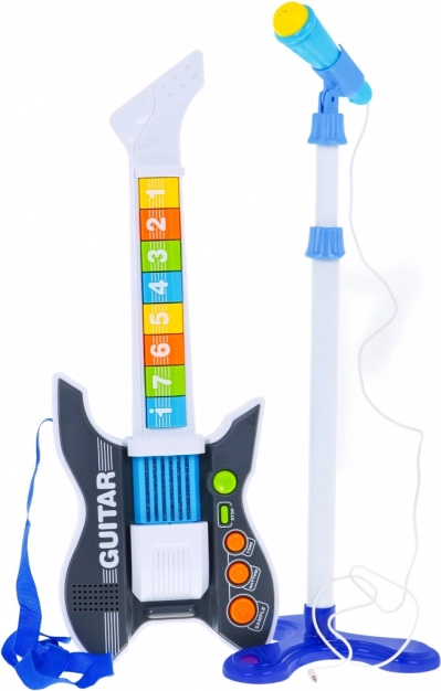 | | Une guitare électrique unique est destinée aux enfants à partir de 3 ans. La présence de la musique dans le développement de l’enfant a indéniablement un effet positif. |