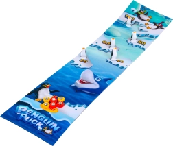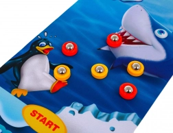 Grand tapis clairement marqué avec une zone de départ et des cases numérotées pour compter les points facilement. Le motif océan avec des manchots et un requin renforce l’ambiance du jeu.