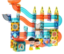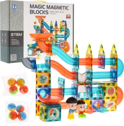 Découvrez un monde de créativité avec cet ensemble coloré comprenant 128 pièces magnétiques. Ce kit permet de créer une piste à billes dans n’importe quelle configuration. Les éléments sont fabriqués dans un matériau de haute qualité, lisses et soigneusement finis. Grâce aux aimants intégrés, ils se connectent facilement et assurent la stabilité de la structure. Un guide illustré pour assembler des exemples de pistes est inclus.
