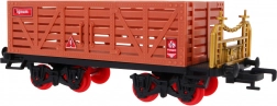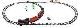 Le set comprend un ovale de rails avec un système d’assemblage simple, une locomotive détaillée avec tender et trois wagons, des accessoires tels que bâtiment de gare, station et arbres, ainsi qu’une alimentation via câble USB. Grâce au plastique robuste, l’ensemble est durable et adapté à un jeu quotidien.