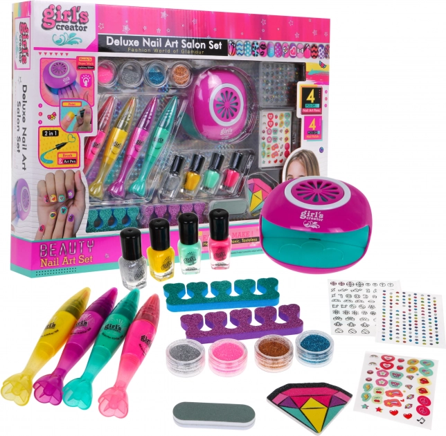 D3couvez le monde magique de la manucure avec cet ensemble de manucure fantastique ! L'ensemble sécurisé et amusant comprend un véritable sèche-ongles qui non seulement sèche les ongles, mais émet également des sons réalistes. Le centre du sèche-ongles est éclairé par des lampes, ajoutant une touche magique à l'ensemble de la manucure. N'oubliez pas que le sèche-ongles nécessite 2 piles AA 1,5V, non incluses dans l'emballage.