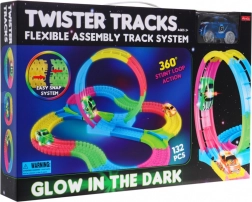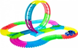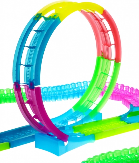 Cette grande piste de course lumineuse est conçue pour les enfants dès 3 ans. Elle est fluorescente et brille magnifiquement dans l’obscurité, ce qui, associé à l’éclairage LED de la voiture, crée des effets extraordinaires. Le montage facile et la simplicité d’utilisation en font un excellent complément pour tout jeu d’enfant.