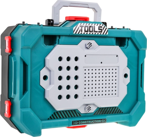 - Valise + station 2-en-1, perceuse interactive avec sons, embouts interchangeables