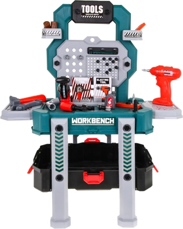 Découvrez un set de bricolage polyvalent qui se transforme en un clin d’œil d’une valise de transport en une station de travail stable avec compartiments. Les enfants apprécieront les sons réalistes de la perceuse–tournevis avec deux embouts interchangeables et pourront s’initier aux outils de manière ludique et sécurisée.