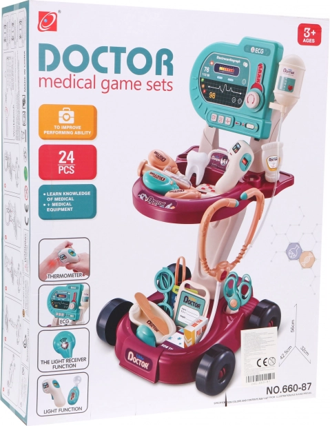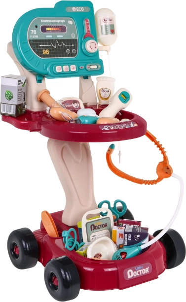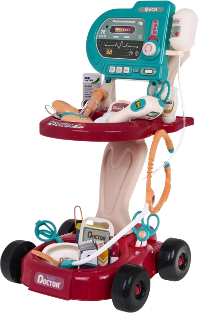 Les enfants peuvent jouer avec le chariot médical, qui est facilement transportable grâce aux roulettes. Ce kit développe le jeu imaginatif et aide les enfants à découvrir le monde de la médecine.
