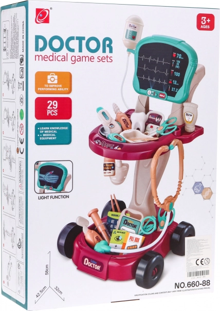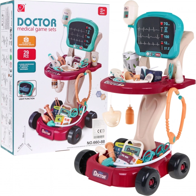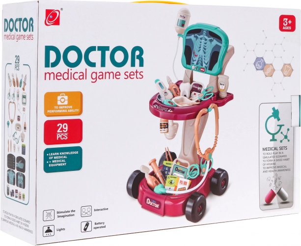 Ce set de docteur sûr et coloré est conçu comme un chariot à roulettes facile à déplacer. Il offre aux enfants tout ce dont ils ont besoin pour jouer au docteur et développer leur sens des soins et de l'empathie.