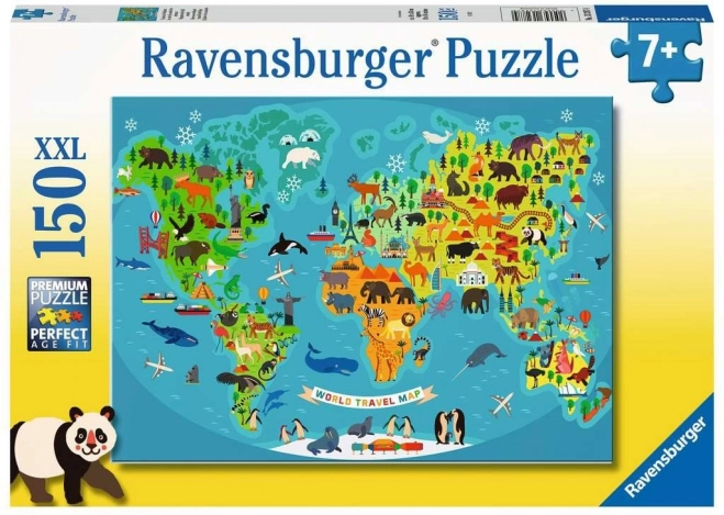 Découvrez le puzzle Carte du monde des animaux sauvages XXL de Ravensburger avec 150 pièces. Parfait pour les amoureux des animaux. Dimensions assemblé : 49 x 36 cm.