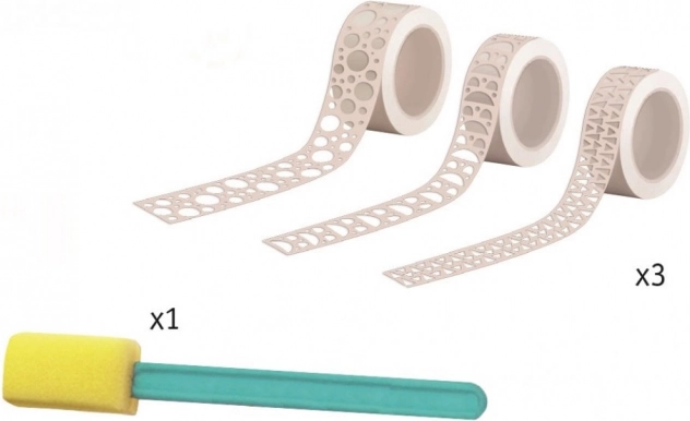 - Tout est inclus – fonds, parties d’animaux, peintures, pochoirs, pastilles adhésives et éponge.