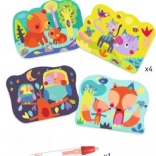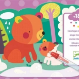 Les coloriages à l’eau DJECO offrent aux enfants dès 18 mois une activité créative simple et propre, sans peinture. Sur quatre cartes rigides au format 21 × 26 cm, de charmants personnages apparaissent au contact de l’eau – un ourson, un chat, une chouette et un renard. Quand l’eau sèche, l’image s’estompe et le jeu peut recommencer.