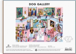 Puzzle Galerie Canine présente une illustration amusante d’Art-Jann Venema, montrant une galerie pleine de chiens admirant des œuvres célèbres. Idéal comme cadeau et offrant une impression de qualité sur papier recyclé.