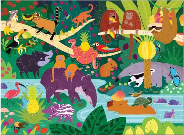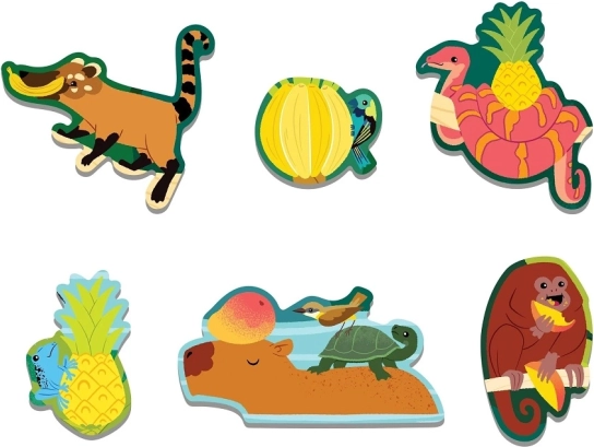 Une jungle vivante avec des animaux et des fruits tropicaux stimule l’attention et l’imagination. Idéale pour des moments de puzzle partagés et l’apprentissage par le jeu.