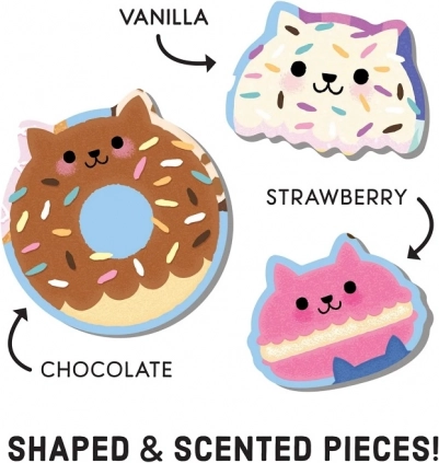 Découvrez un puzzle ludique et parfumé qui associe l’assemblage à une expérience olfactive. Le puzzle au motif du café des chats propose 60 pièces, dont 6 pièces spécialement façonnées, parmi lesquelles 3 sont parfumées avec des senteurs appréciées – fraise, vanille et chocolat. Une fabrication de qualité en papier recyclé, une finition mate et une boîte robuste garantissent longévité et plaisir de jeu.