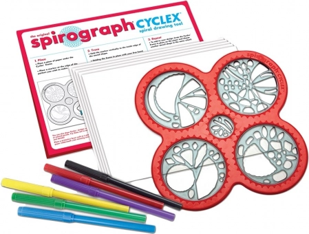 Le Spirographe CYCLEX s’inspire du concept légendaire de 1965 et le propose dans une version moderne et facile à utiliser. Il suffit d’insérer une roue dans le gabarit, choisir un feutre et se laisser guider – en quelques instants naissent des motifs spiralés précis sans compétences avancées.