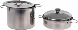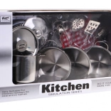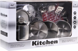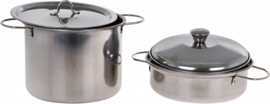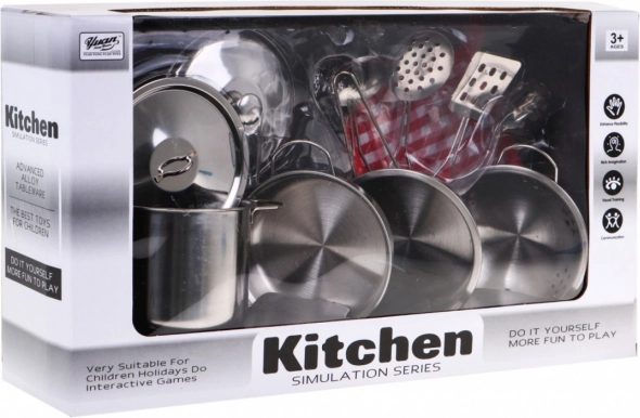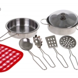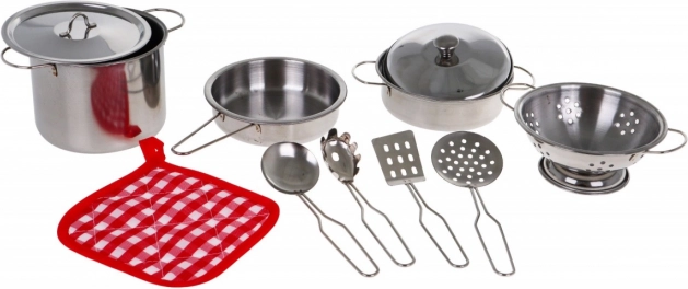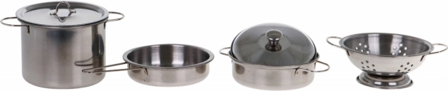 | | Set de casseroles de haute qualité en acier inoxydable. Il ressemble à un véritable équipement de cuisine, mais en version miniature. Le set convient aux enfants dès 3 ans. Il fera certainement plaisir à tout petit cuisinier ou petite cuisinière. Le set influence positivement l’imagination et la créativité des enfants et développe la passion pour la cuisine. |