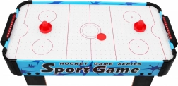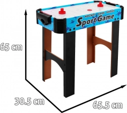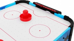 Profitez d’un divertissement dynamique avec cet air hockey de table compact. La surface de jeu percée et le flux d’air créent un coussin sur lequel le palet glisse sans frottement. Deux joueurs s’affrontent face à face et, à l’aide de poignées ("grzybków"), tentent de marquer dans le but adverse.