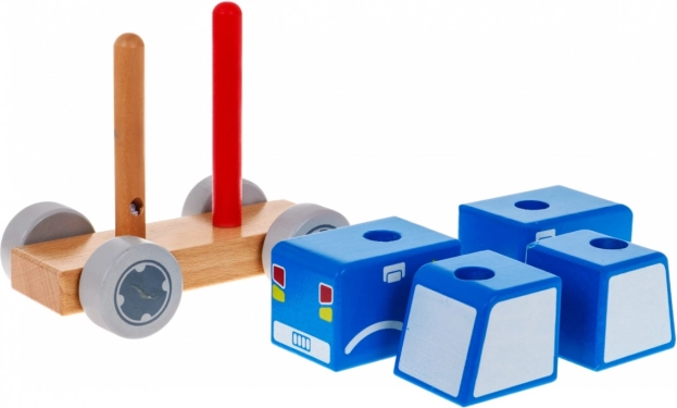 Quatre blocs en bois s’enfilent sur deux chevilles et forment ensemble une petite voiture de police réaliste. Idéal pour les premières activités logiques.