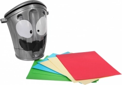 Le paquet contient 24 morceaux de papier coloré représentant des déchets, et l'amplitude de mouvement du couvercle peut être ajustée, y compris sa possibilité de blocage complet. Le gagnant est celui qui jette le plus de bouts de papier dans la poubelle.