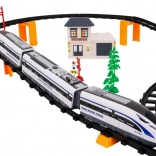 Ce superbe set comprend 52 pièces pour une longueur totale de voie de 396 cm. Le train est piloté par une télécommande permettant un mouvement vers l’avant et vers l’arrière. Les rails disposent d’un système d’assemblage simple et solide, assurant sécurité et durabilité. La locomotive et les wagons sont fabriqués en plastique de haute qualité pour garantir une longue durée de vie.