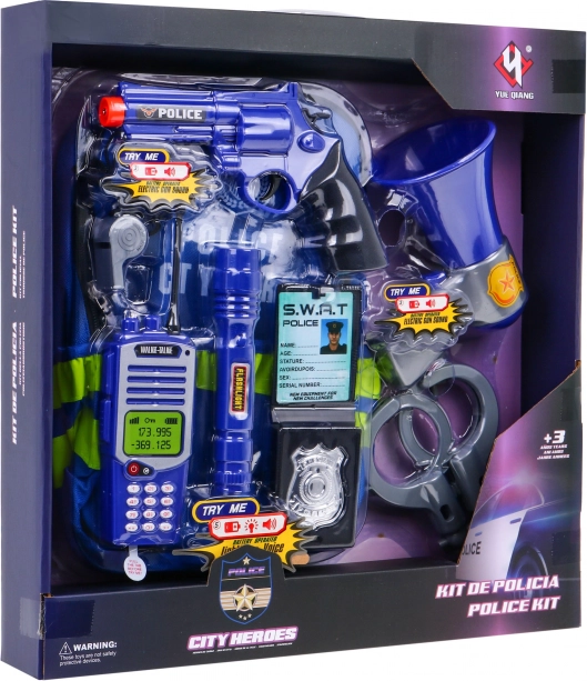 | | Set de police richement équipé, interactif et réaliste pour les enfants à partir de 3 ans. Le set se compose d’un sac à dos pratique et spacieux et d’accessoires de police. Le jouet dispose de fonctions sonores (pistolet, mégaphone, talkie-walkie) et lumineuses (talkie-walkie et lampe de poche). Alimentation par 6 piles AG13 (piles incluses). Fonctions du set : - sac à dos spacieux pouvant contenir tous les accessoires du set, - pistolet avec sons de tir, - mégaphone avec effet sonore, - talkie-walkie avec effets sonores et lumineux, - lampe de poche avec effet lumineux. |