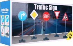 Le coffret comprend STOP, obligation de tourner à droite, cédez le passage, route prioritaire et passage pour piétons – idéal pour créer un petit circuit de circulation.