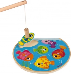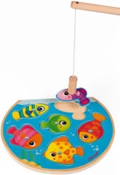 Puzzle magnétique en bois amusant pour petits pêcheurs. À l’aide d’une canne magnétique, les enfants attrapent les pièces et les replacent aux bons endroits. Contient 6 poissons colorés et 1 canne, développe la motricité fine, la coordination œil–main ainsi que la reconnaissance des couleurs et des formes. Convient dès 12 mois.