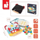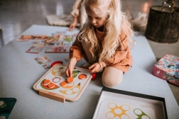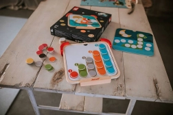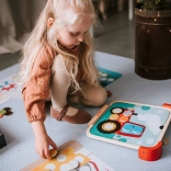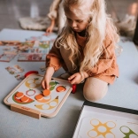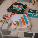 Les enfants placent les pastilles colorées selon les modèles, entraînent la reconnaissance des couleurs, des motifs et la concentration — de manière ludique et sans pression.
