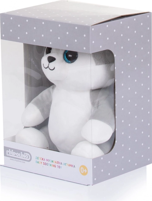 Apaisez bébé avec de douces mélodies et une lumière colorée – l’adorable husky en peluche CHIPOLINO propose une veilleuse intégrée dans le ventre, 3 berceuses et un matériau ultra doux pour un confort maximal. Grâce aux bandes auto-agrippantes, vous l’attachez facilement au lit, à la poussette ou au transat.