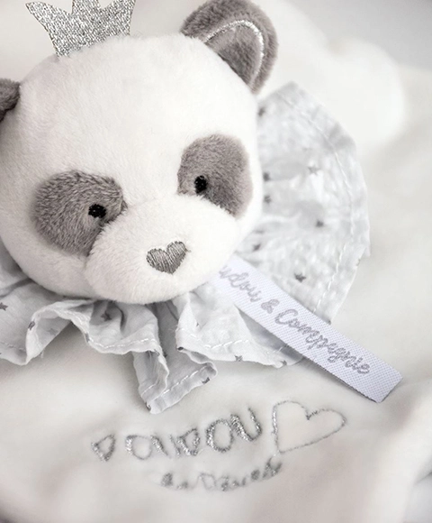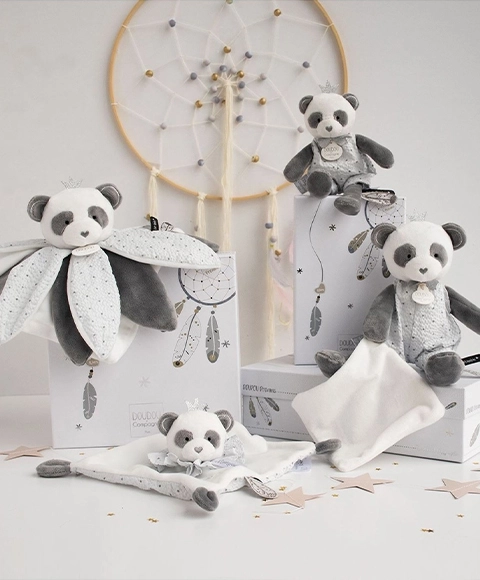 Le doudou en peluche panda de haute qualité est conçu pour développer les sens et la curiosité de votre petit trésor. Grâce aux harmonies délicates de couleurs modernes et aux matériaux de première qualité, il devient un compagnon préféré non seulement pour les plus petits, mais aussi pour les enfants plus âgés.