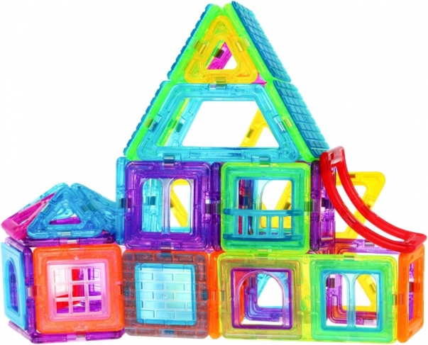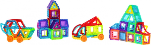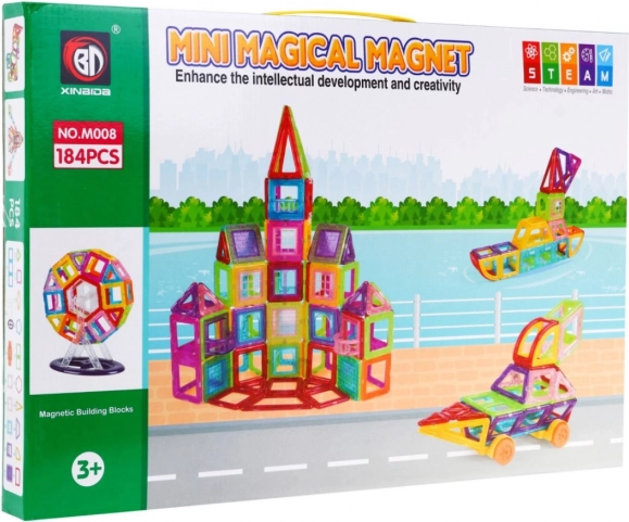 | | Le grand ensemble de cubes magnétiques est un jouet destiné aux enfants à partir de 3 ans, mais les enfants plus âgés et même les adultes s’en amuseront aussi. Le kit de construction favorise la créativité, apprend la patience et la concentration. Les briques sont légères et résistantes, et permettent de construire des structures étonnantes. Alors, au travail ! | Contenu de l’ensemble | * blocs 184 éléments * 4 châssis à deux roues d’environ 9 cm x 5 cm, * 8 éléments de structure pour grande roue, * 2 pentagones, * 2 hexagones d’environ 8,5 cm x 7,5 cm, * 8 fenêtres avec garde-corps d’environ 4 cm x 2,5 cm, * 2 triples carrés d’environ 13 cm x 4,5 cm, * 6 doubles carrés d’environ 8,5 cm x 4,5 cm, * 56 carrés d’environ 4,5 cm x 4,5 cm, * 24 fenêtres d’environ 7,5 cm x 4 cm, * 6 trapèzes d’environ 6 cm x 4 cm, * 6 autres pièces, * notice illustrée, * emballage d’environ 51 cm x 35 cm x 5 cm. |