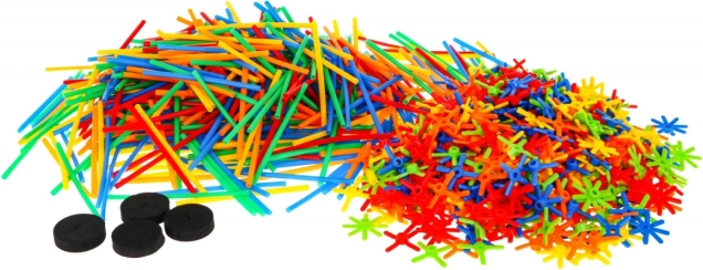 - 600 pailles, 536 connecteurs en croix, 60 connecteurs en étoile, 4 roues, boîte avec fermeture