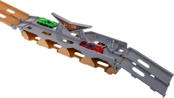 Placez la petite voiture au niveau inférieur et appuyez sur le levier sur le toit – la catapulte propulse le véhicule vers l’avant directement sur la piste. Super action sans piles.