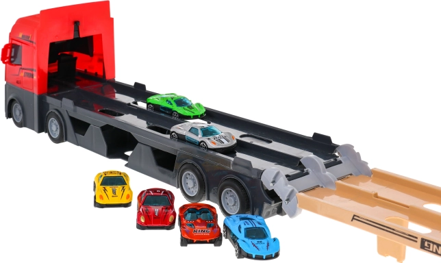 Découvrez un maximum de fun avec le set 3-en-1 : un grand camion à trois niveaux avec compartiments de rangement, une piste de course dépliable et une catapulte pour petites voitures. Grâce à une longueur de piste jusqu’à 207 cm, 6 voitures métalliques incluses et une poignée pratique pour le transport, c’est le choix parfait pour les enfants dès 3 ans. Sans piles, avec roues en caoutchouc et traction à deux roues pour une conduite fluide et un jeu en toute sécurité à la maison comme en voyage.