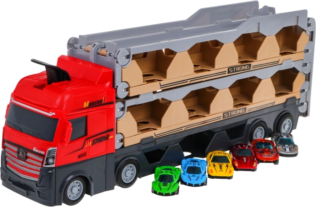 Le camion offre un espace de rangement à trois niveaux pour les petites voitures et une poignée confortable pour transporter facilement le jouet partout.