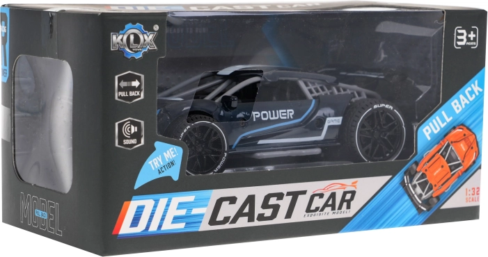Voiture métallique à remontoir 1:32 avec pneus en caoutchouc et effets sonores – Power