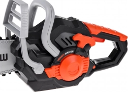 Une tronçonneuse électrique pour enfants réaliste qui garantit des heures de jeu de jardinage en toute sécurité. Elle offre une chaîne en caoutchouc mobile, des effets sonores comme une vraie tronçonneuse et le coffret inclut également des lunettes de protection pour un amusement encore plus sûr. Sa construction légère en plastique, sa manipulation facile et son design noir‑gris avec des éléments orange plairont à tous les enfants.
