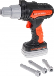 Perceuse électrique pour enfants fonctionnant avec 2× AA (non incluses) pour un jeu réaliste. Inclus : embout plat, cruciforme et foret pour diverses tâches.