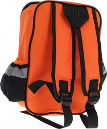 Un sac à dos textile léger avec compartiment principal zippé, poches extérieures et éléments réfléchissants pour garder les outils clairs et en sécurité au même endroit.