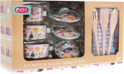 Ce set de cuisine en aluminium soigneusement fabriqué et durable pour enfants, offre une excellente opportunité de jeu de cuisine. Le set est destiné aux enfants à partir de 3 ans et comprend un riche ensemble de 10 pièces incluant des casseroles avec couvercles, des ustensiles de cuisine et une manique.