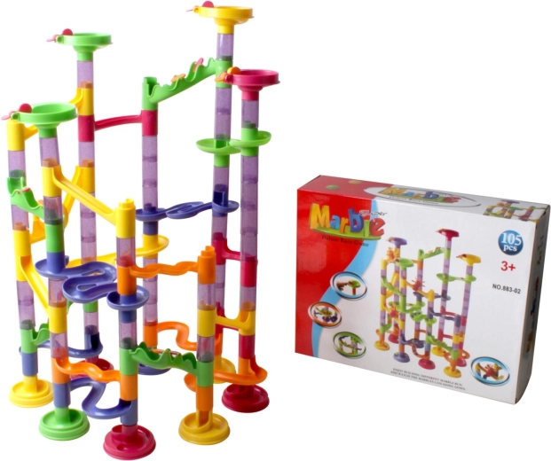 Parcours de billes coloré et résistant pour les enfants à partir de 3 ans, qui développe la créativité et les compétences manuelles. Idéal pour la construction individuelle et l'observation ultérieure du mouvement des billes.