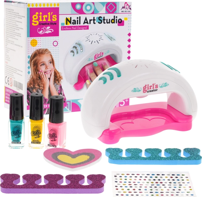 Ce coffret à ongles apporte imagination et amusement aux petits passionnés directement dans leur chambre. Le séchoir à ongles sèche efficacement les ongles et émet des sons de séchage réalistes tout en projetant une lumière douce. Tous les vernis à ongles sont sûrs et non toxiques, faciles à enlever, permettant un amusement infini sans souci.