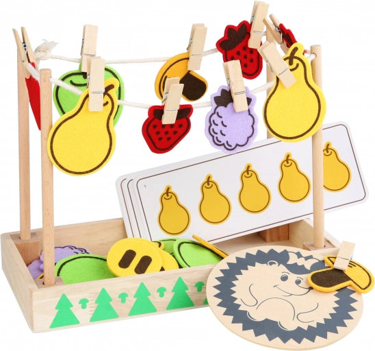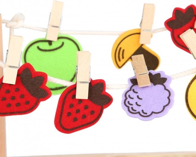 Intégrez ce jouet éducatif Montessori magnifique dans la chambre des enfants et observez comment vos enfants découvrent la joie de suspendre les fruits et légumes à l'aide de pinces. Ce jouet est conçu pour offrir aux enfants une manière unique d'apprendre et de s'amuser.