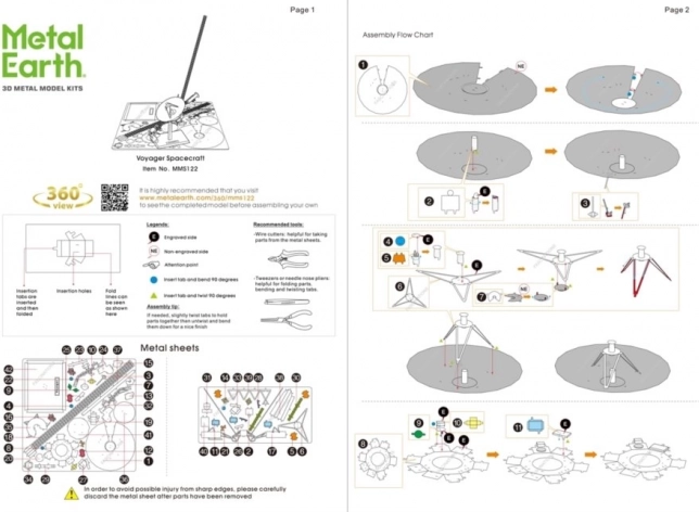 Détachez les différentes pièces des plaques métalliques ; si nécessaire, utilisez de petites pinces coupantes (non incluses). Les pièces s’assemblent grâce à des verrous formés par une languette et un trou. Pliez la languette à l’aide de petites pinces fines (non incluses) et assemblez progressivement tous les verrous jusqu’à obtenir une pièce maîtresse très réaliste !