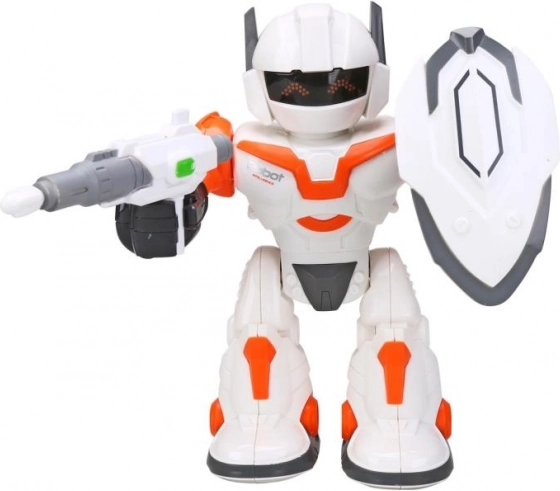 Pour encore plus d’aventures, le robot est équipé d’une arme et d’un bouclier, stimulant l’imagination et le jeu narratif. Sa couleur orange marquante et ses effets en font un jouet attrayant et une excellente idée cadeau.