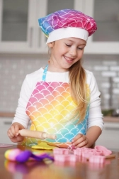 Jouer au chef n’a jamais été aussi amusant ! Ce set de pâtisserie pour enfants comprend un tablier, une toque, une manique et des ustensiles pratiques comme des emporte-pièces, des mesures, un rouleau, une spatule et un fouet – le tout dans un design arc-en-ciel éblouissant. Idéal pour les premières pâtisseries et le jeu créatif en cuisine. Âge 3+.