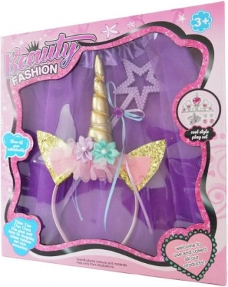 Ce serre-tête confortable tient bien en place et ne glisse pas. Il est orné d’une corne dorée, de petites oreilles scintillantes et de fleurs colorées – l’accessoire parfait pour un look féerique.