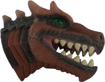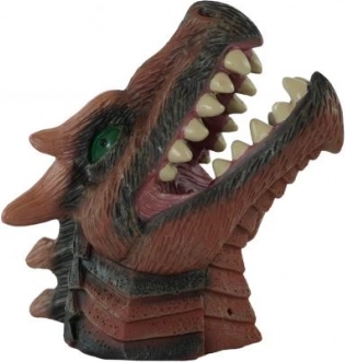 Des écailles détaillées, des dents marquées et des yeux perçants confèrent à la marionnette un aspect authentique qui plonge immédiatement les enfants dans le jeu.