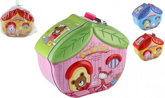 Cette adorable tirelire en tôle en forme de petite maison, au motif « Apple house », aide les enfants à apprendre à gérer leur argent et à compter. Elle dispose d’une serrure sécurisée avec clé, d’une fente pratique pour pièces et d’une construction métallique résistante déclinée en plusieurs couleurs gaies que les enfants vont adorer.
